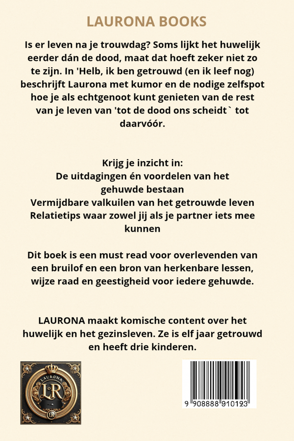 In Help, ik ben getrouwd (en ik leef nog!) neemt Laurona je met humor, eerlijkheid en een flinke knipoog mee door de achtbaan die ‘het huwelijk’ heet.